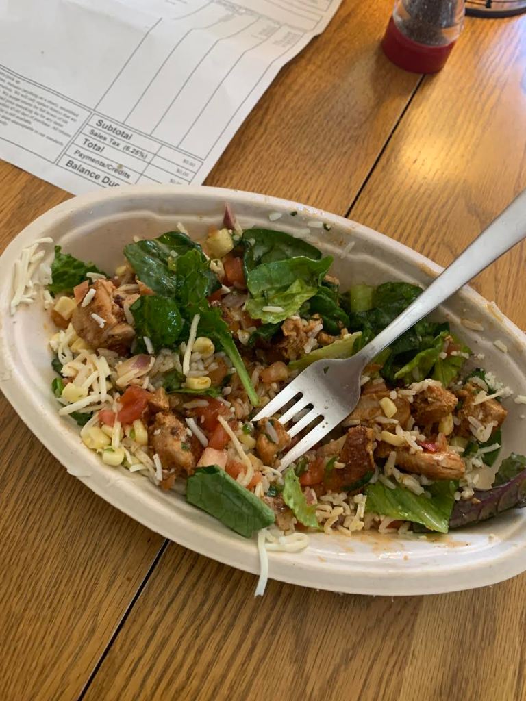 Now for last week and this week to come, I am going to continue with listening to my body and eating when I am hungry. Lunch time has become one of my favorite meals, since I get to be more creative with my limited options. I try to always have a salad with chicken, and drink lots of water. I have struggled mentally with not being able to go to the gym. But, so far home workouts seem to be doing the trick. Getting creative with weights, towels, and stairs get my body moving.